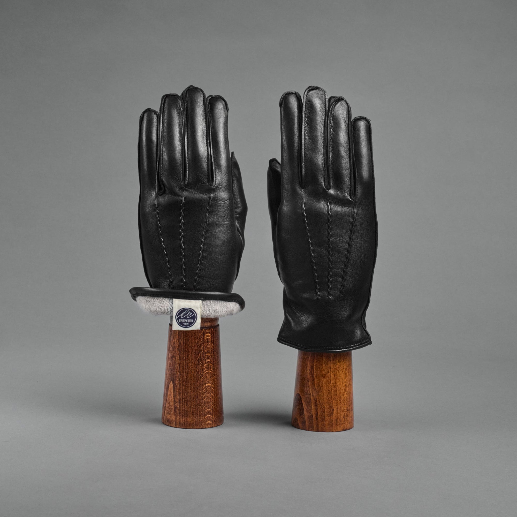 Herrenhandschuhe aus schwarzem Ziegenleder, gefüttert mit grauem Kaschmir