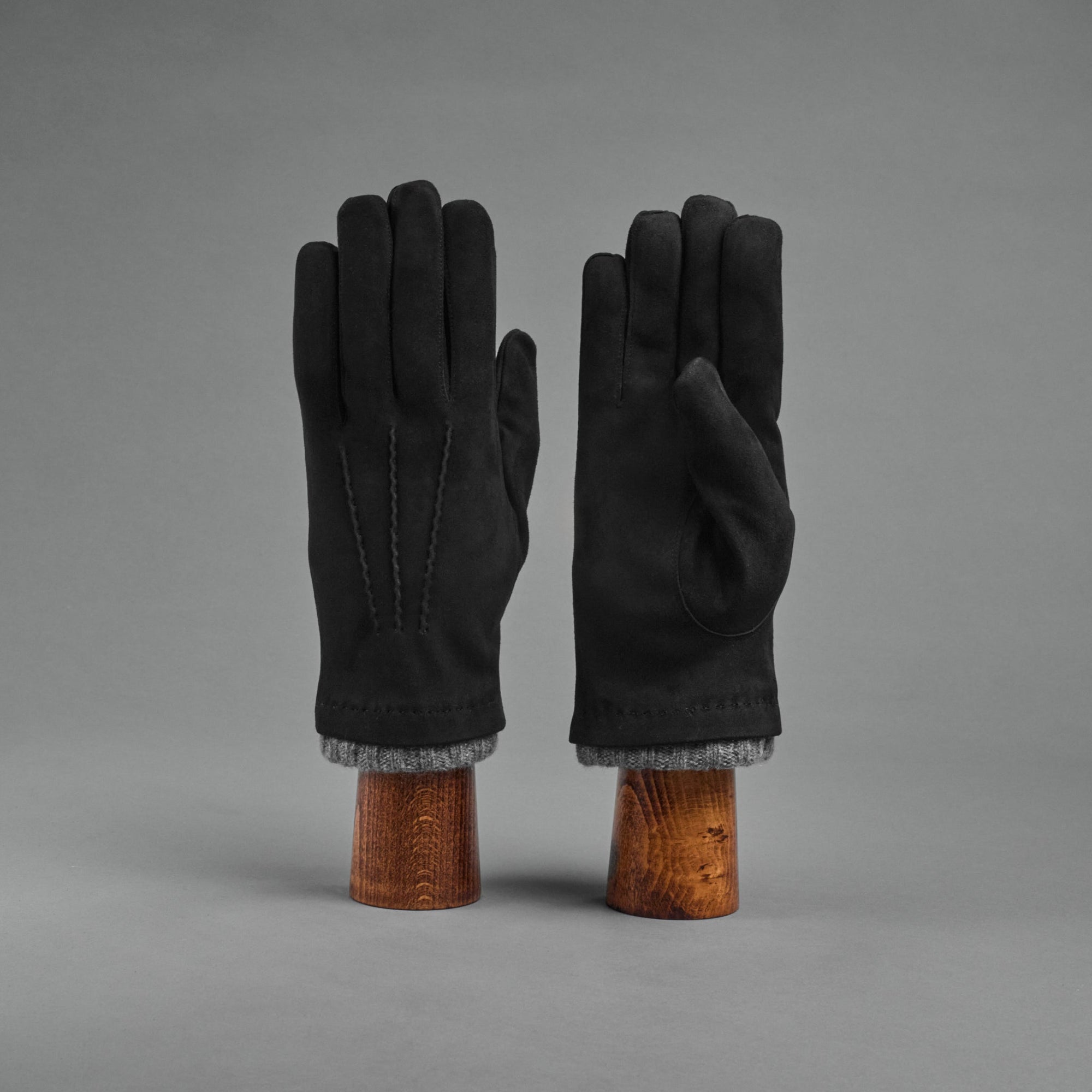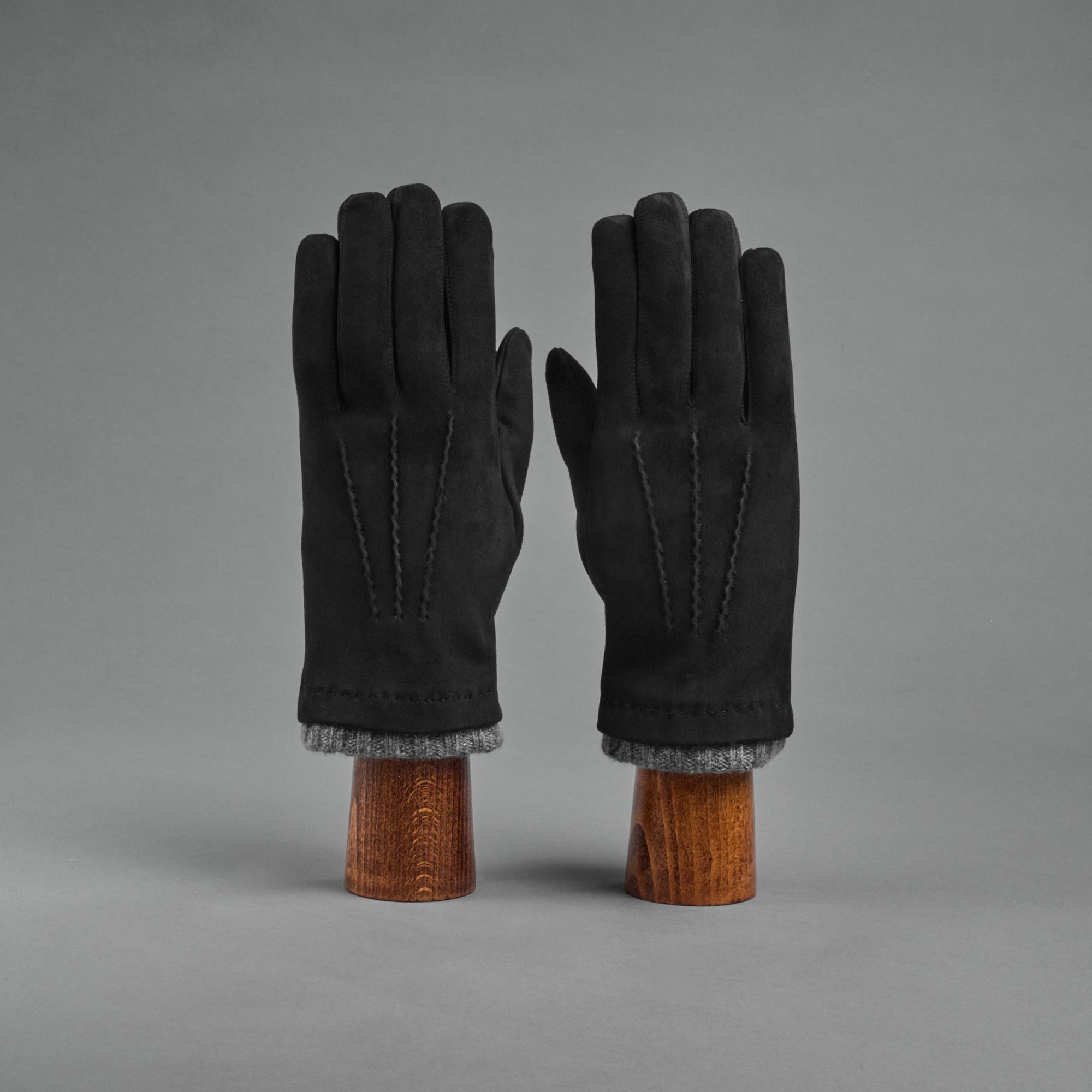 Herrenhandschuhe aus schwarzem Ziegennubukleder mit Kaschmir-Futter