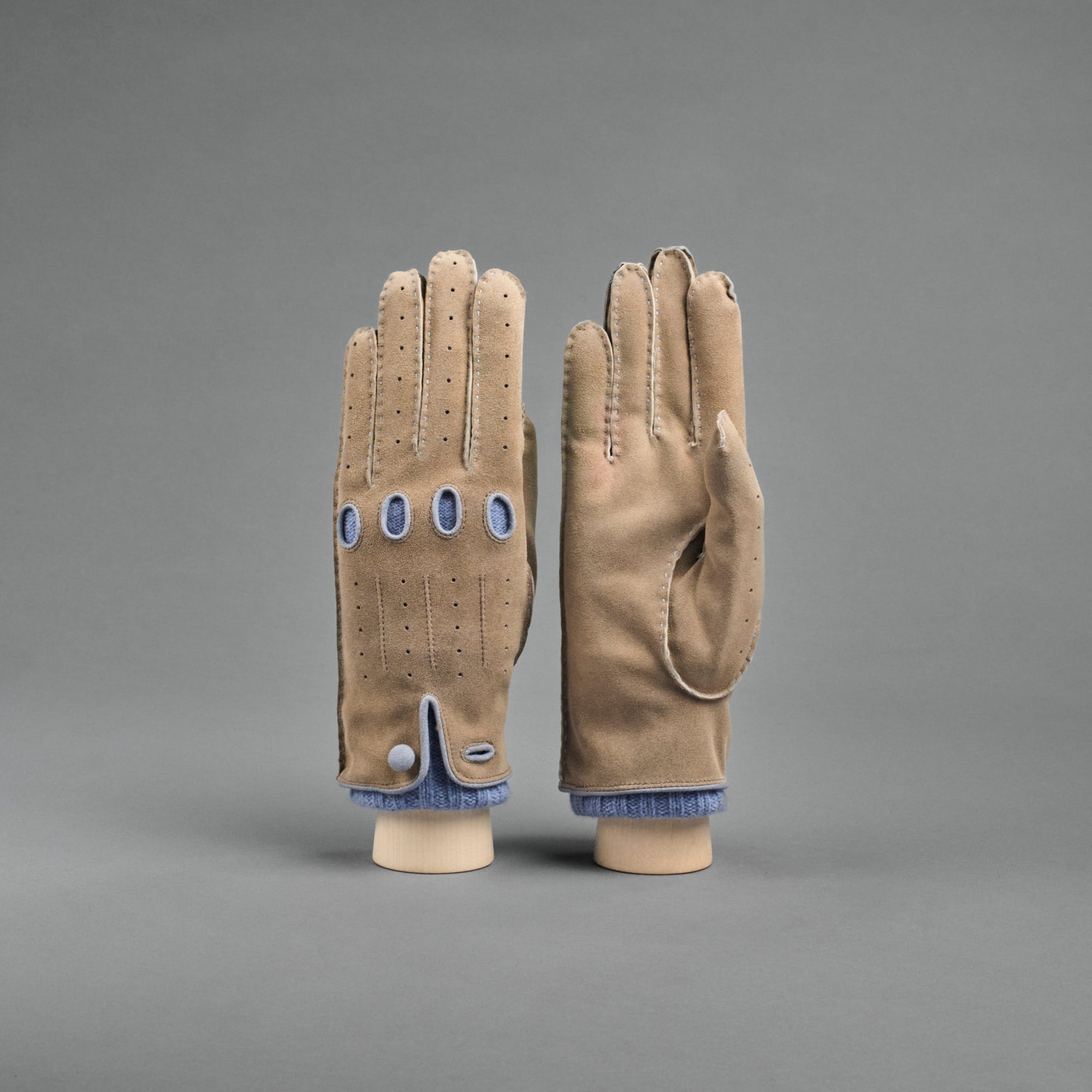 Ladies Gloves from Beige Goatskin lined with Light Blue Cashmere
